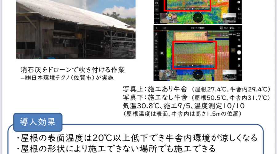 佐賀県内で、当社のドローンによる「屋根への消石灰吹き付け作業」を実施しました。 今回は散布前後で実際に屋根表面 […]