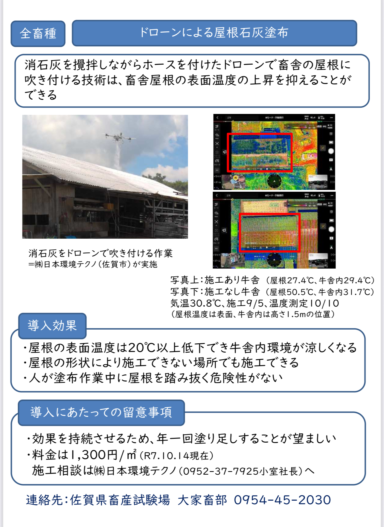佐賀県内で、当社のドローンによる「屋根への消石灰吹き付け作業」を実施しました。
